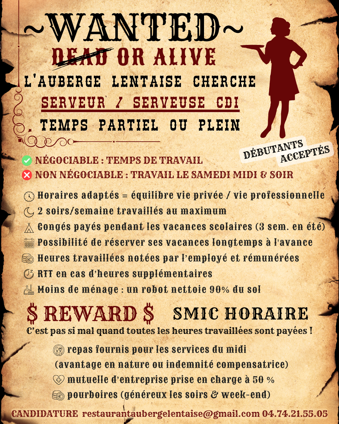 Si vous avez une demande particulière, vous pouvez nous écrire à restaurantaubergelentaise@gmail.com (merci de ne pas utiliser cette adresse pour faire une réservation ou pour donner une information annexe à une réservation déjà faite, mais d’utiliser le téléphone ou la réservation en ligne)